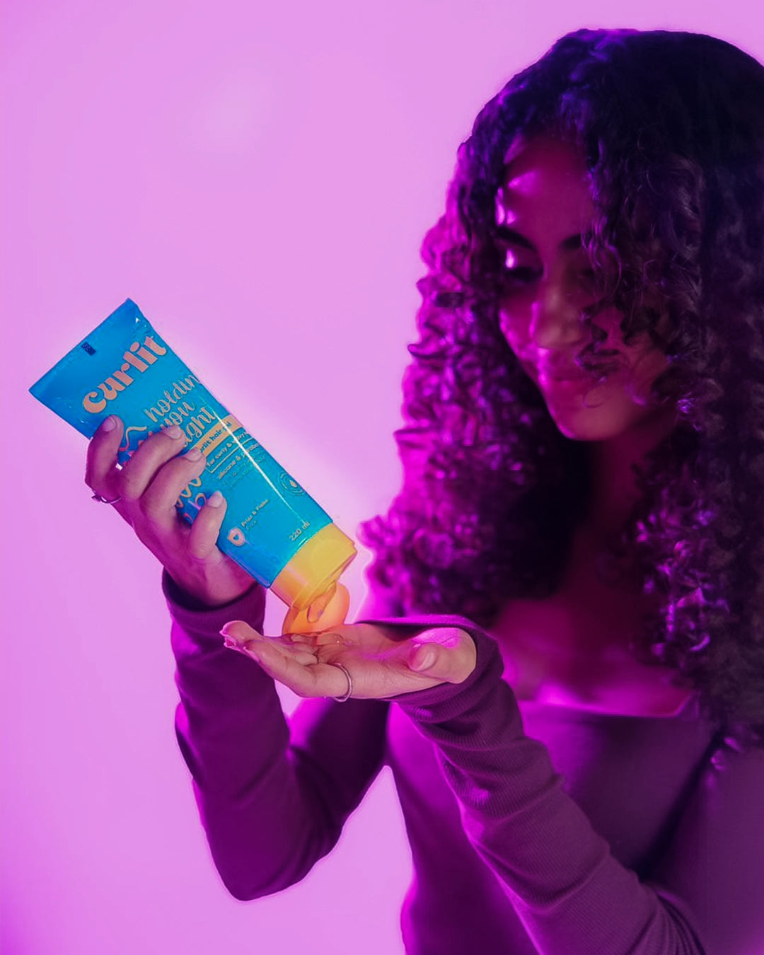 - Apply the gel – Take a small amount of Curlit Gel and distribute it evenly over your hair using the “praying hands” method or scrunching for enhanced curl definition.
